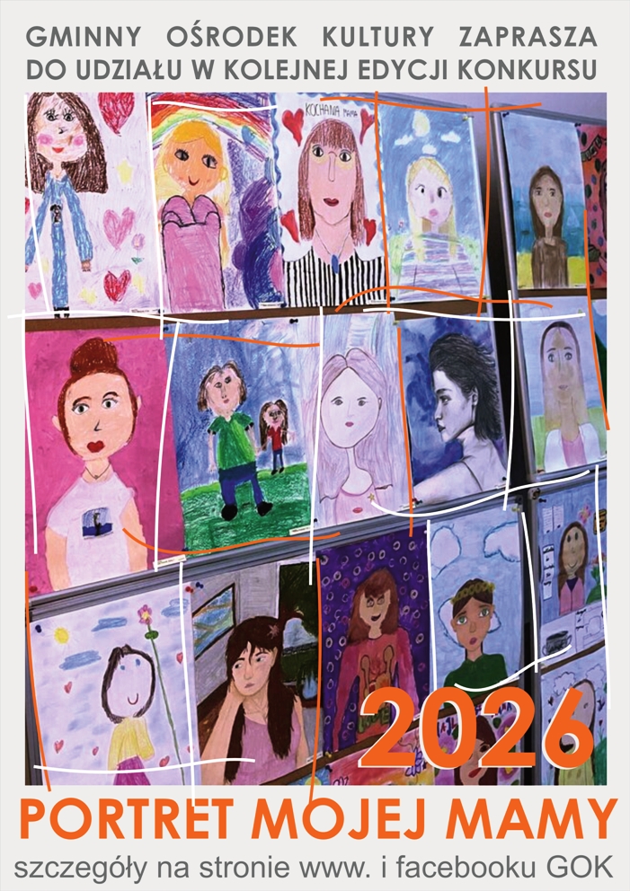 W ramach udziału w kolejnej edycji goczałkowickiego konkursu plastycznego "Portret mojej mamy" organizowanego przez Gminny Ośrodek Kultury, zachęcamy do przesyłania prac, które będą przedstawiać wyjątkowy wizerunek Waszych kochanych mam.